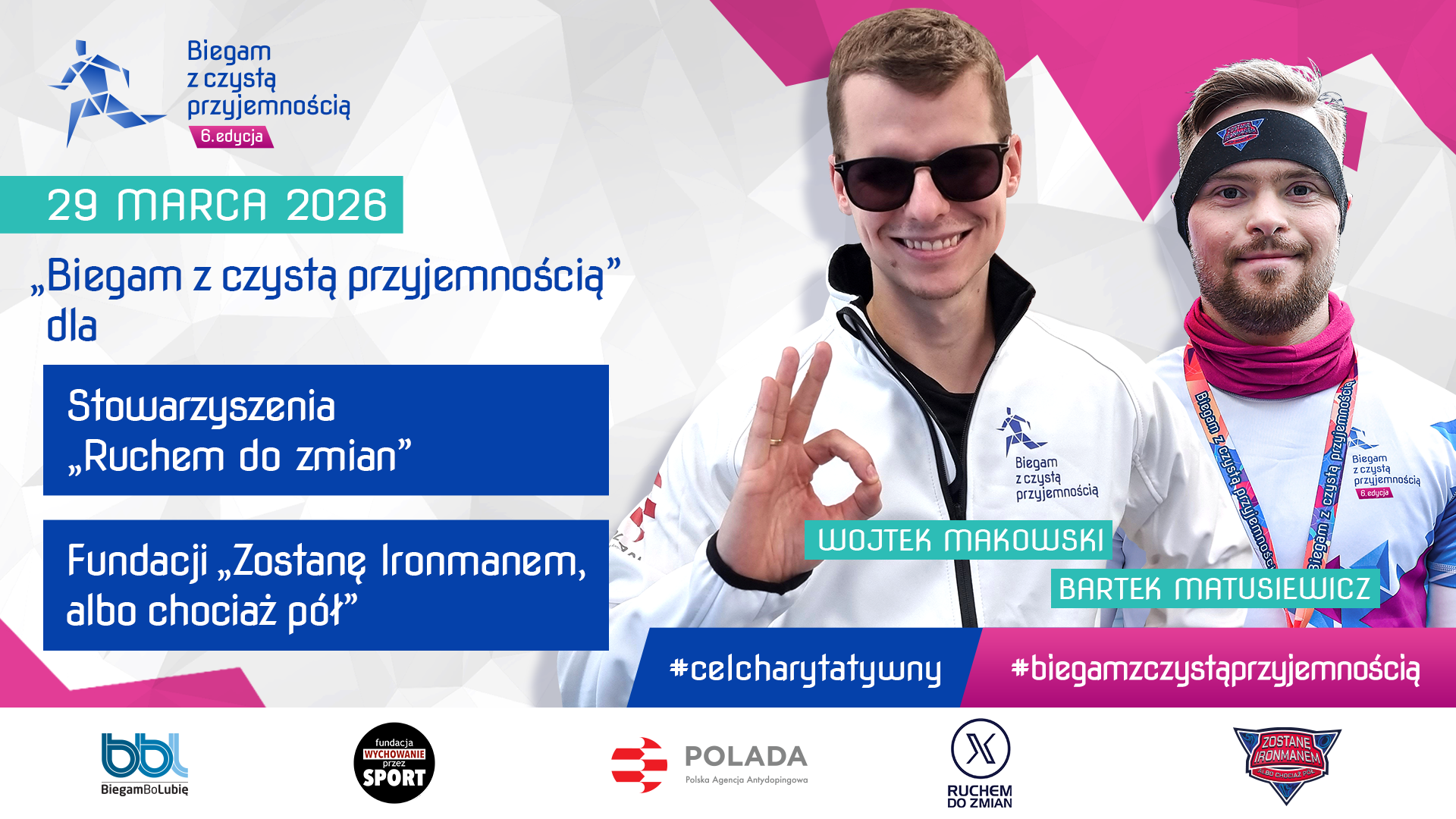 Stowarzyszenie „Ruchem do zmian” powstało, żeby zmniejszać poziom wykluczenia ruchowego i nierówności w dostępie do aktywności fizycznej dla osób z niepełnosprawnościami w Polsce. Wśród założycieli jeden z ambasadorów naszego biegu od pierwszej edycji, znakomity sportowiec, a przede wszystkim niesamowity człowiek Wojtek Makowski.